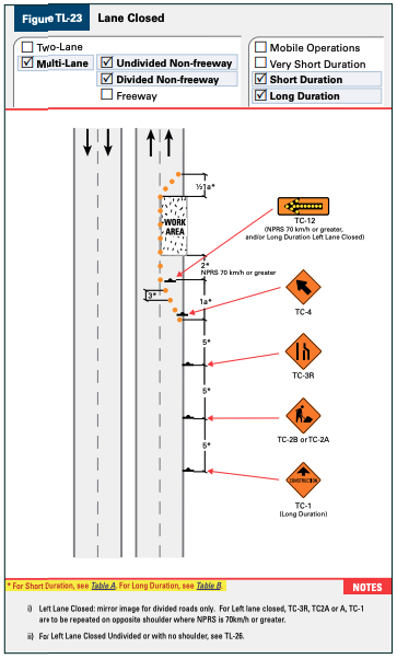 One of our most common traffic setups is the TL-23 lane closure which involves closing one lane in a double lane traffic zone.